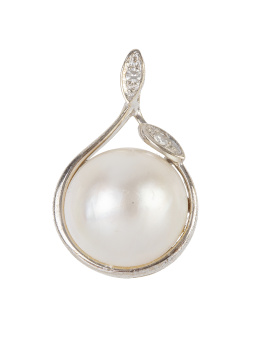 Colgante guardapelo oval de pp. S. XX con tres brillantes en el frente y decoración de filigrana