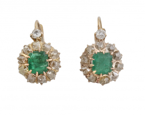 6. Pendientes rosetón S. XIX con esmeraldas talla esmeralda orladas de brillantes talla antigua