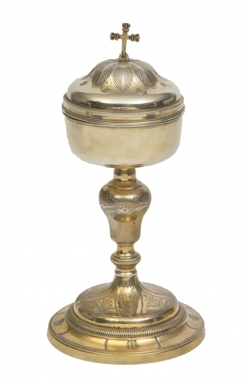 Home / SUBASTA DE JUNIO DE 2021 / Copón de plata dorada y metal. Ley 800.Francia, S. XIX.