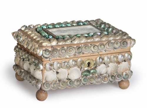 Home / SUBASTA DE JUNIO DE 2021 / Cajita de recuerdo en madera con aplicaciones de conchas y