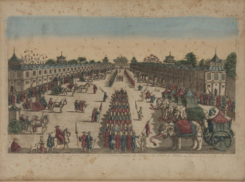 Vista óptica: "Vue de la superbe entree de l´embassadour de Siam a la Cour de Pekin"