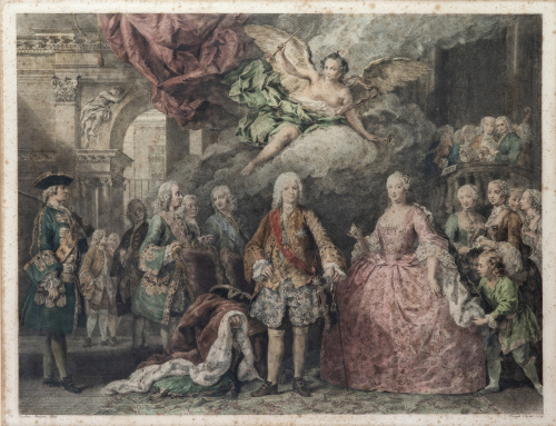Retrato de Fernando VI y Bárbarara de Braganza con sus hijos