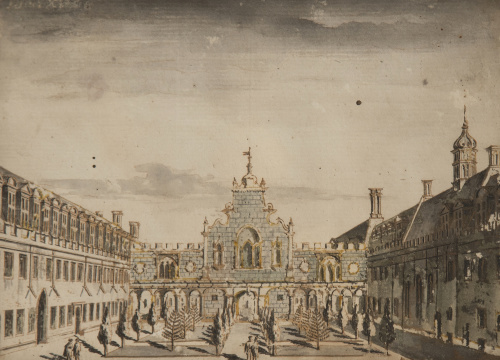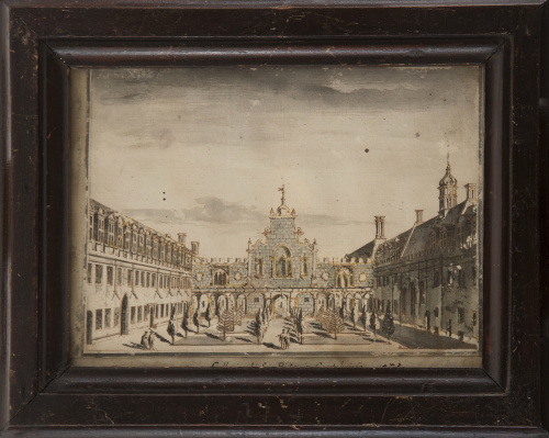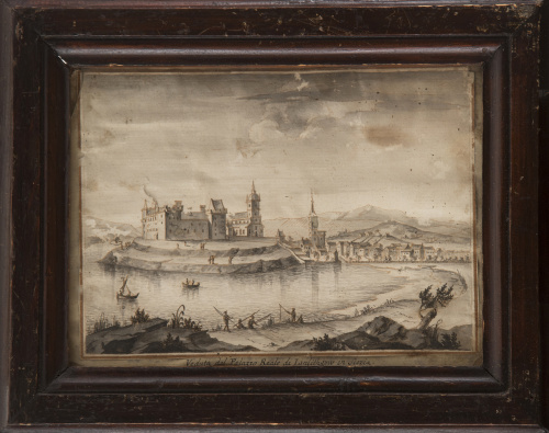 Inscritos: "Vedutta del Palazzo Reale di Linlithgow in Scozia, h. 1744" y "Collegio di S. Pietro in Cantabrigia, h. 1743".