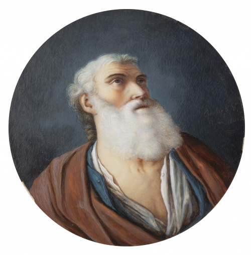 Miniatura sobre marfil adherida a vitela. 9,5 diámetro.