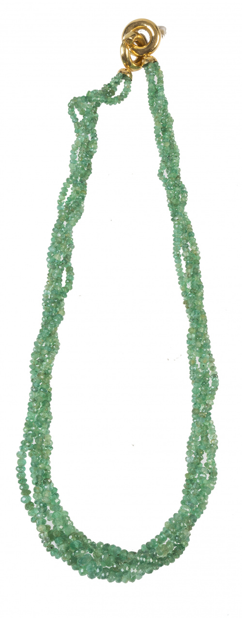130. Collar de cinco hilos de esmeraldas facetadas de tamaño creciente hacia el centro