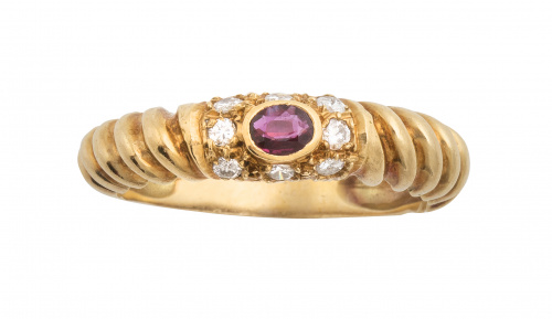155. Sortija con rubí rodeado por brillantes en montura gallonada