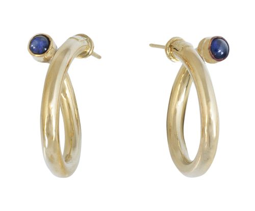 Pendientes con diseño de criollas tubulares abiertas y rematadas en cabuchón de zafiro