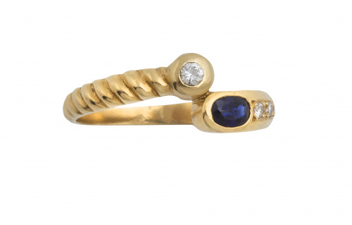 Home / SUBASTA OCTUBRE / Sortija tu y yo con zafiro y brillante en montura gallonada