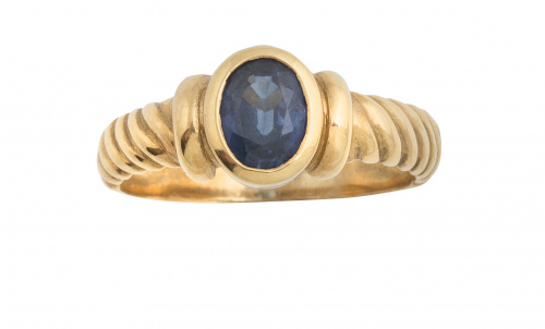 Sortija con zafiro central en montura con gallón oblicuo
