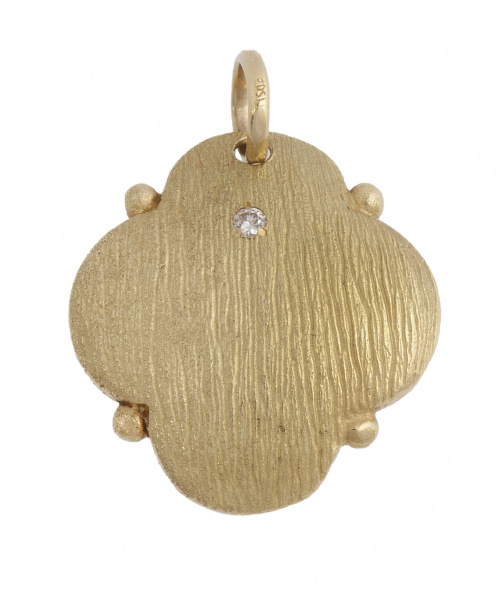 167. Colgante con perfil cuatrilobulado en oro mate con pequeño brillante central