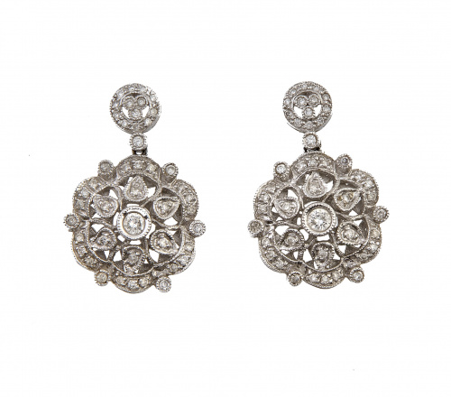 187. Pendientes de brillantes con flor colgante de rosetón superior con decoración calada