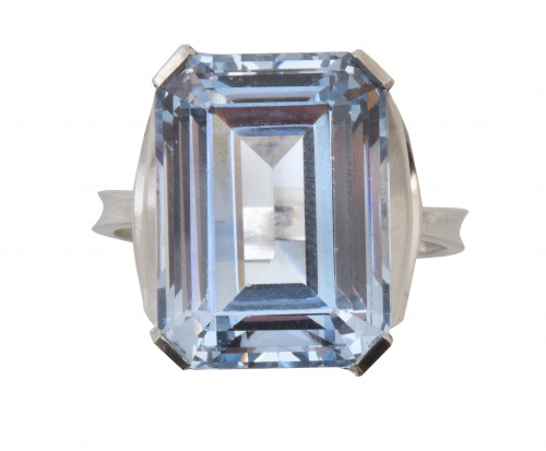 201. Anillo en oro blanco con gran espinela azul de talla esmeralda