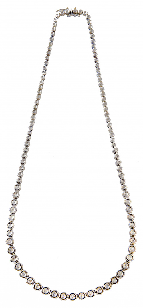 Collar rivière con 106 brillantes enmarcados en chatones articulados de tamaño creciente hacia el centro