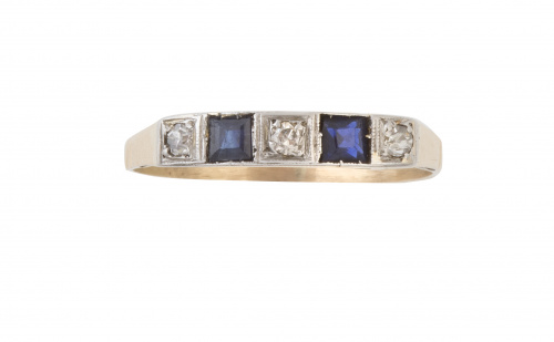 215. Sortija cintillo Art-Decó con zafiros y brillantes alternos