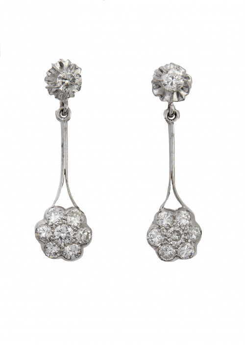 Home / SUBASTA OCTUBRE / Pendientes largos estilo Art-Decó de brillantes con roseton