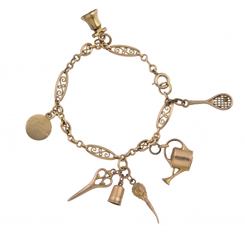 Pulsera con eslabones calados de pp. S. XX con charms colgantes