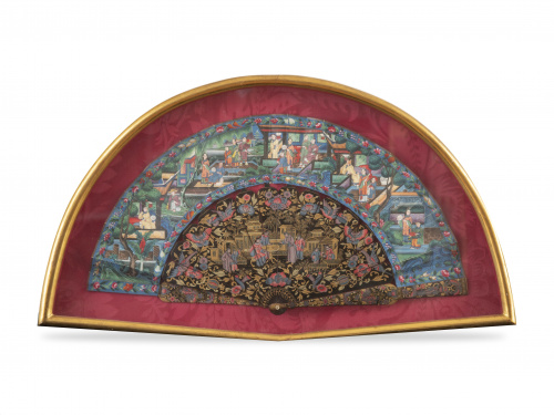 Home / SUBASTA OCTUBRE / Abanico "mil caras" con padrones de madera lacada, dorada y