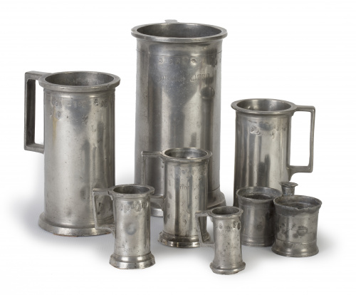 Lote de 6 medidas de estaño, S. XIX -XX.