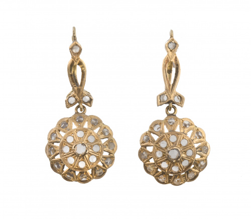 Home / SUBASTA OCTUBRE / Pendientes largos de pp. S. XX con rosetones colgantes de z