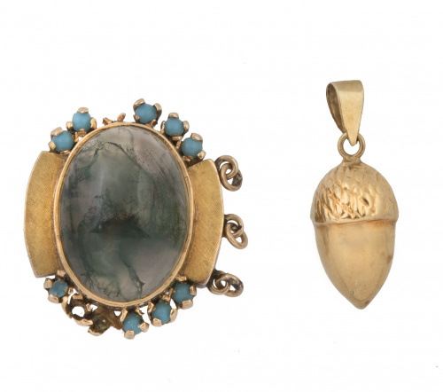 97. Lote de colgante en forma de bellota y cierre de collar con ágata musgosa