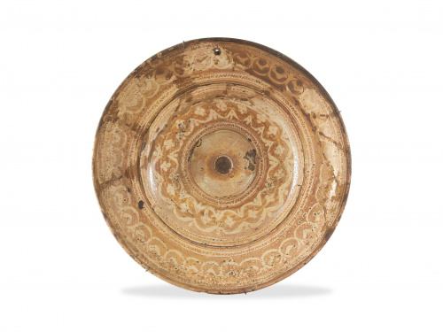 Home / SUBASTA OCTUBRE / Plato de cerámica esmaltada en reflejo metálico con umbo ce
