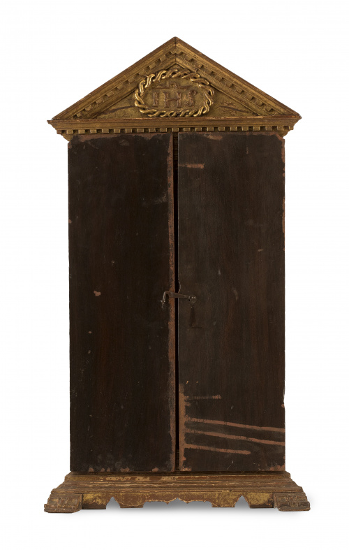 1147. Altar portátil en madera tallada, policromada y dorada.