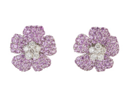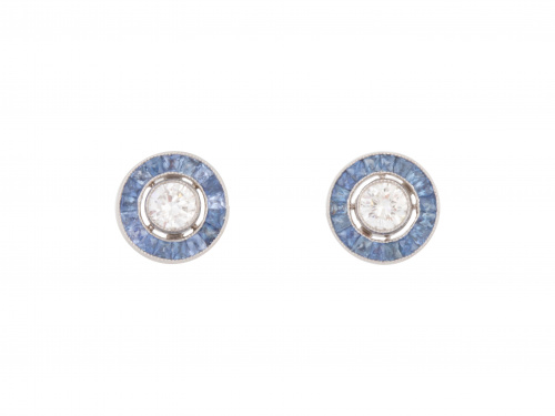105. Pendientes ojo de perdiz con brillantes con un brillante orlado de zafiros calibrados claros