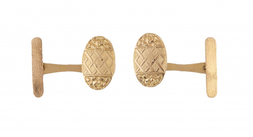 Gemelos ovales de pp. S. XX con decoración en rombos entrelazados gabados y flores
