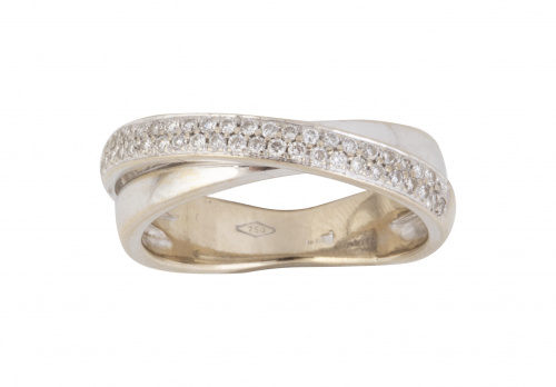 251. Sortija asimétrica con banda de de pavé de brillantes entrelazada con banda de oro liso
