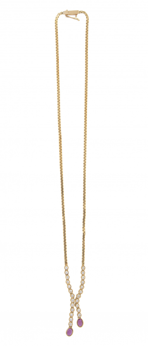 316. Collar con brillantes y rubíes en dos líneas centrales de brillantes en rivière rematadas por rubíes ovales