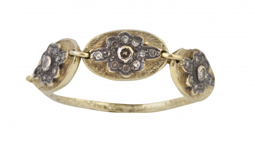 Sortija con tres centros ovales articulados con brillantitos