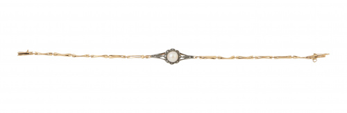 38. Pulsera de pp. S. XX articulada, con una perla en el centro rodeada de diamantitos