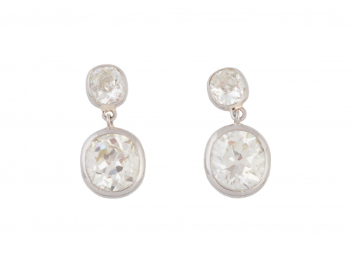 Pendientes con dos brillantes de talla antigua, el inferior colgante, en marcos y montura de platino