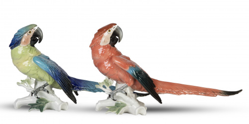 1138. Pareja de guacamayos de porcelana esmaltada.