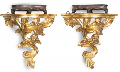 Home / SUBASTA DICIEMBRE 2021 / Pareja de ménsulas en madera tallada y dorada, con peana or