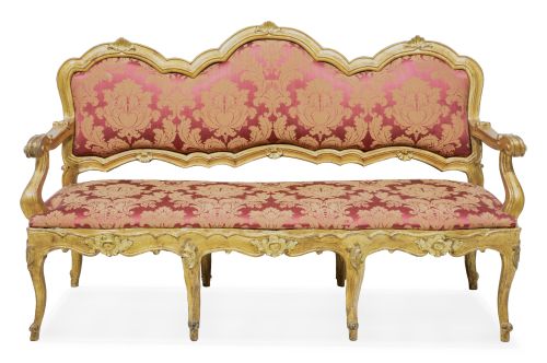 Sofá en madera tallada y dorada de estilo Luis XV.