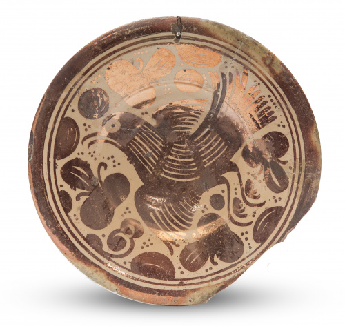 Home / SUBASTA DICIEMBRE 2021 / Plato de cerámica de reflejo metálico con pajarito.Manise