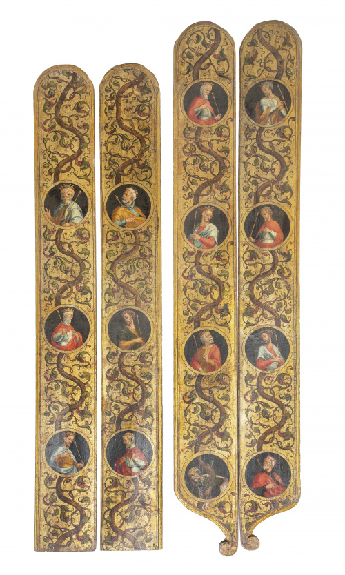 1234. Lote de cuatro paneles pintados sobre tabla decorados con reyes de Israel.