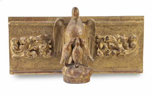 Home / SUBASTA DICIEMBRE 2021 / Pelícano alimentando a sus crías.Remate de madera tallada