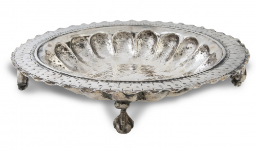 Home / SUBASTA DICIEMBRE 2021 / Brasero en plata repujada apoya sobre patas de garra sobre
