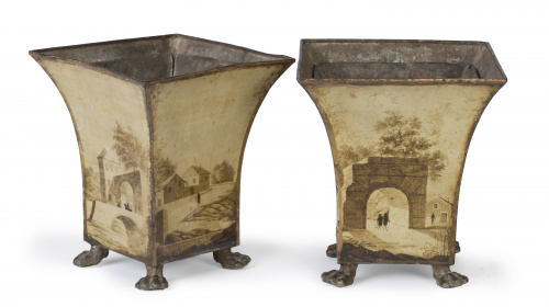 Home / SUBASTA DICIEMBRE 2021 / Pareja de tôles de metal pintado con paisaje Francia, h.