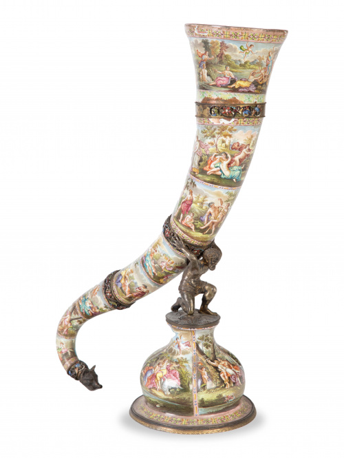 1332. Cuerno de la abundancia en esmalte y metal con esmaltes aplicados.
