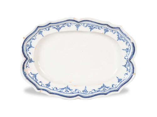 1375. Bandeja ingletada de cerámica esmaltada en azul de cobalto de la serie "Berain".