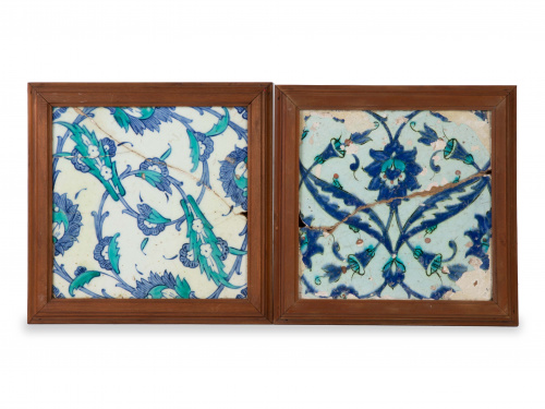 Home / SUBASTA DICIEMBRE 2021 / Dos azulejos Iznik de cerámica esmaltada en azul, verde y b