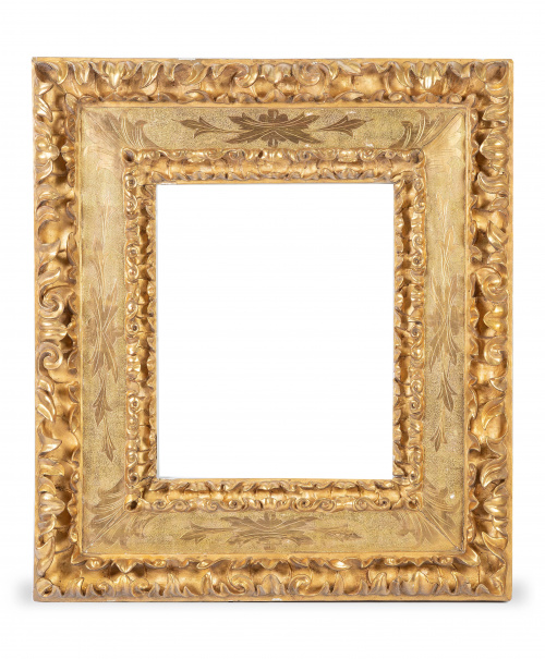 Marco en madera tallada y dorada, siguiendo modelos del S. XVII.