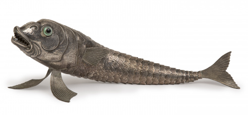 Home / SUBASTA DICIEMBRE 2021 / Pez articulado en plata , S. XX. Con marcas.