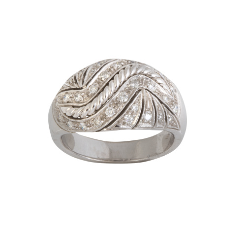 Sortija ancha de brillantes con frente calado en diseño de ondas