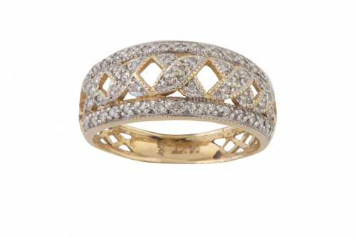 Sortija con diseño a modo de celosía de frente cuajado de brillantitos