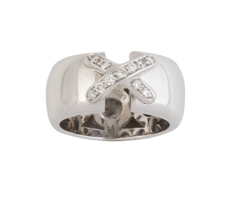280. Sortija ancha con frente en forma de X de brillantes sobre fondo abierto