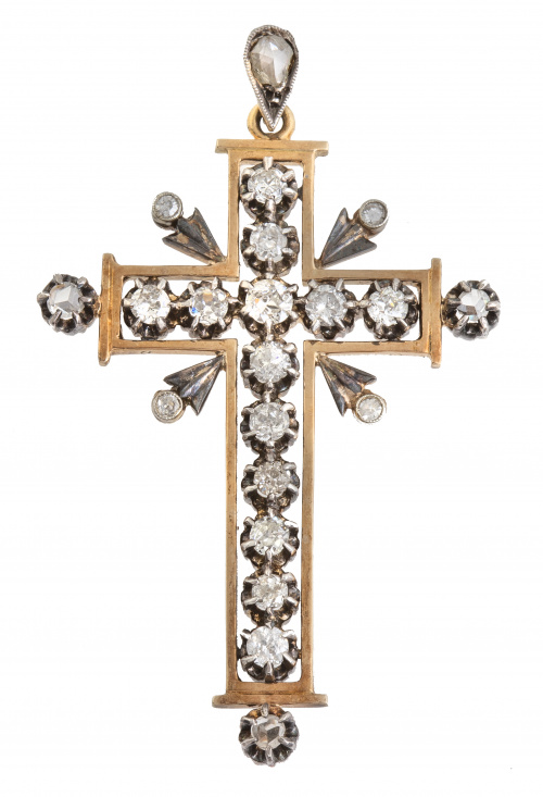 Cruz colgante S. XIX de brillantes de talla antigua en oro y plata